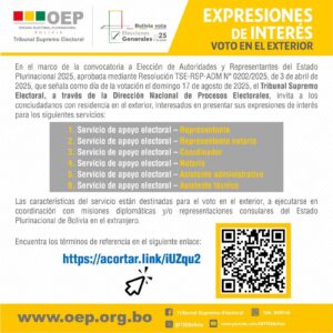 AMPLIACIÓN DE PLAZO HASTA EL 03 de junio, 2025 𝐄𝐱𝐩𝐫𝐞𝐬𝐢𝐨𝐧𝐞𝐬 𝐝𝐞 𝐈𝐧𝐭𝐞𝐫𝐞́𝐬 – 𝐕𝐨𝐭𝐨 𝐞𝐧 𝐞𝐥 𝐞𝐱𝐭𝐞𝐫𝐢𝐨𝐫 I El Tribunal Supremo Electoral, a través de